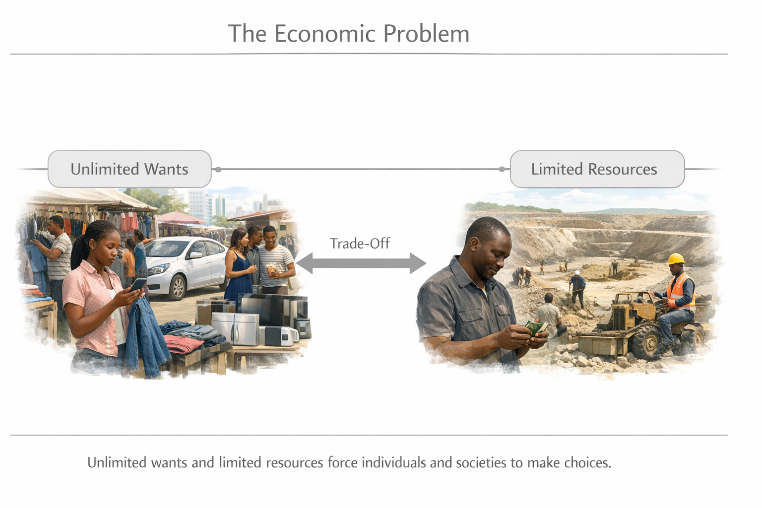 Since resources are limited, not all wants can be satisfied at the same time. Therefore, choices must be made.