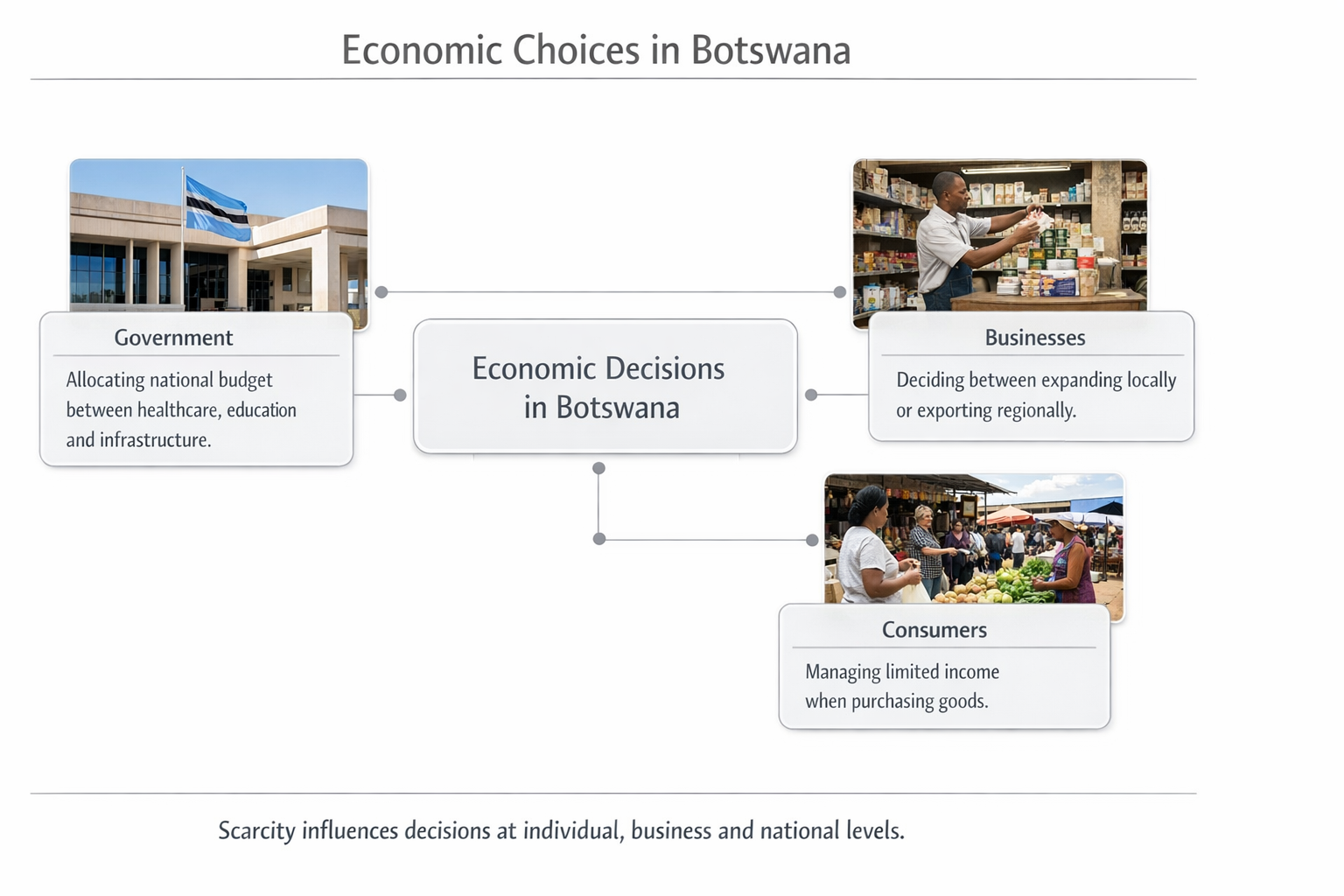 Use business or Botswana-based examples.